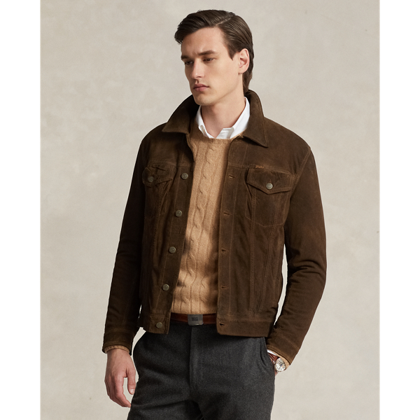 Suede leather hot sale trucker jacket