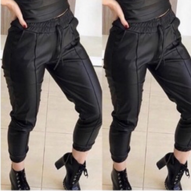 Calça de couro com hot sale elastico